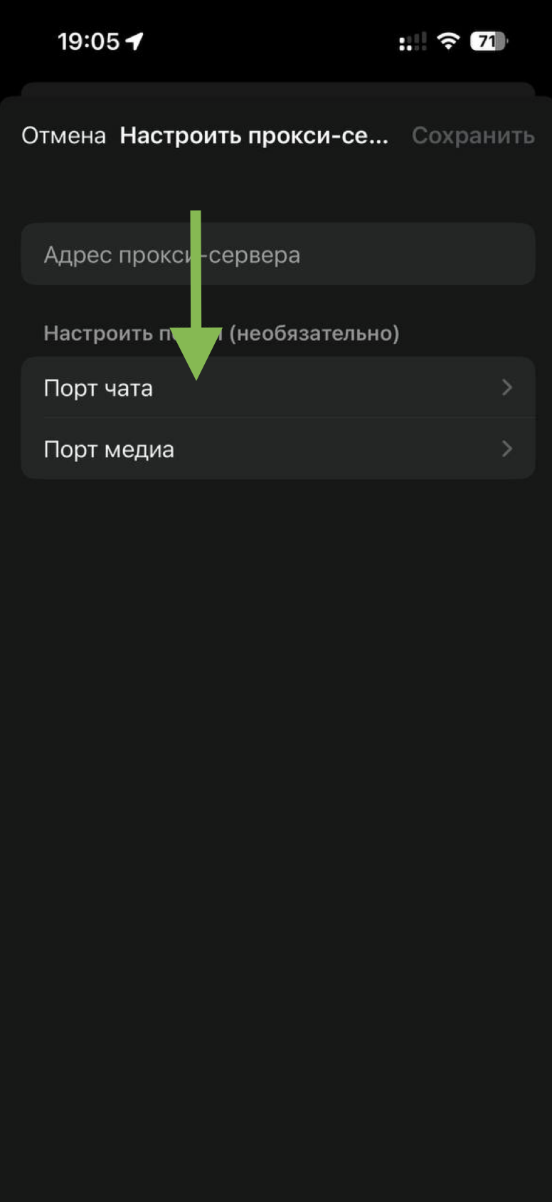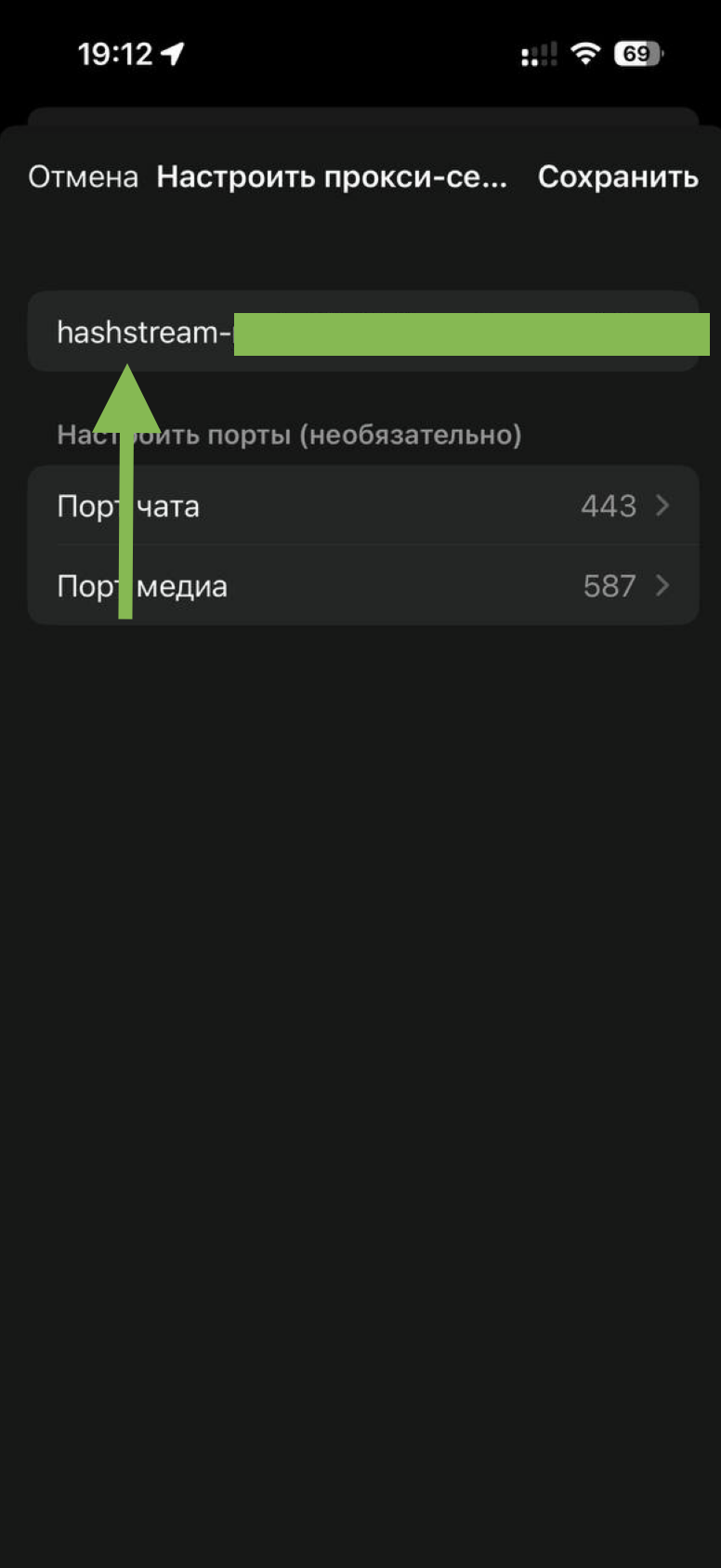 В поле «Адрес прокси-сервера» вставьте ранее скопированный ключ, который вы получили в телеграмм-боте или на сайте. Нажмите на кнопку «Сохранить»