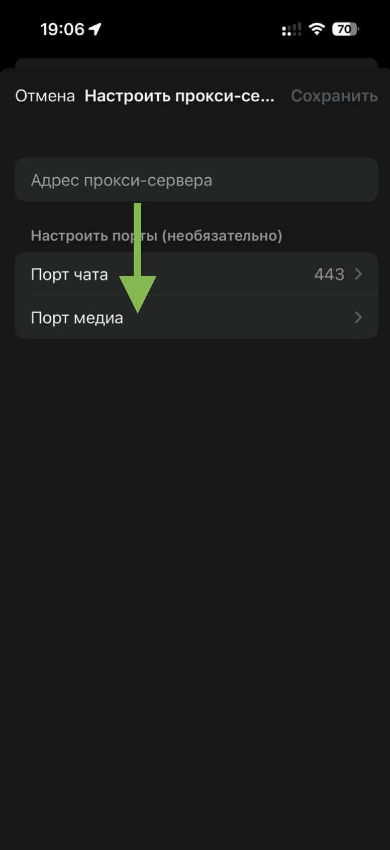 Перейдите в раздел «Порт медиа». Введите порт 587